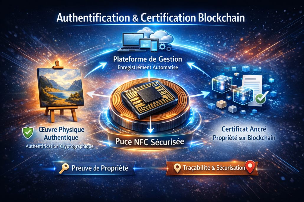 (Preuve de propriété enregistrée sur la blockchain, Certificat ancré dans la blockchain, Registre d’authenticité enregistré sur la blockchain, Authentification hybride physique-numérique, Identité matérielle basée sur la blockchain, Authentification et Certification Blockchain) - Support